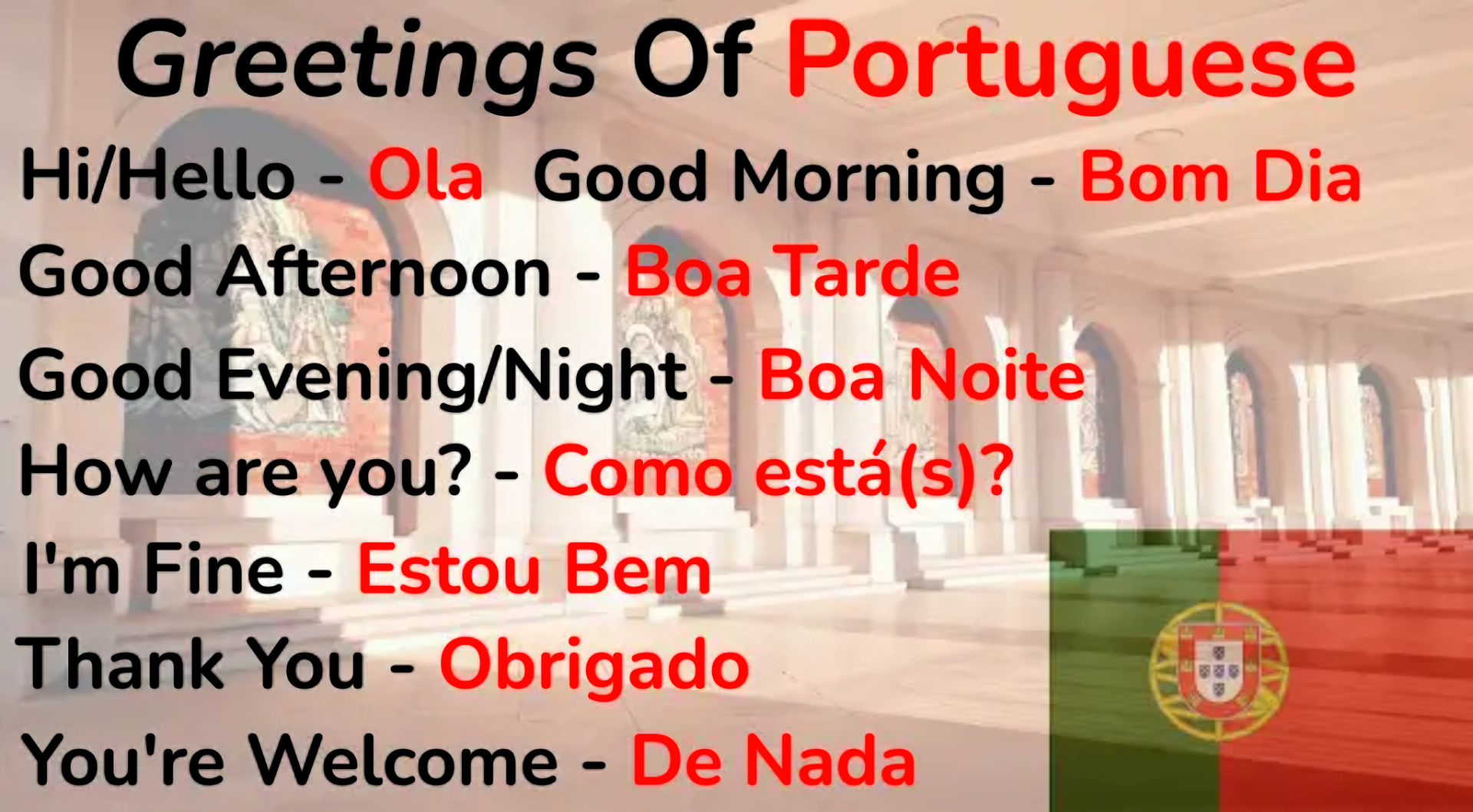 Portuguese is the 3rd most spoken romance language (deriving from Latin), and is widely spoken throughout the world, like its sister languages Spanish and French. Being able to speak a language starts with some greetings to greet someone, so here are some basic greetings you'll hear everyday.